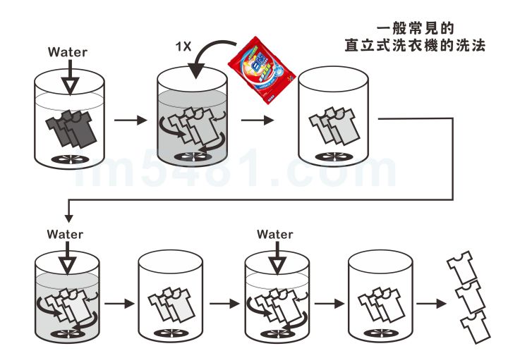 一般直立式洗衣機的清洗方式