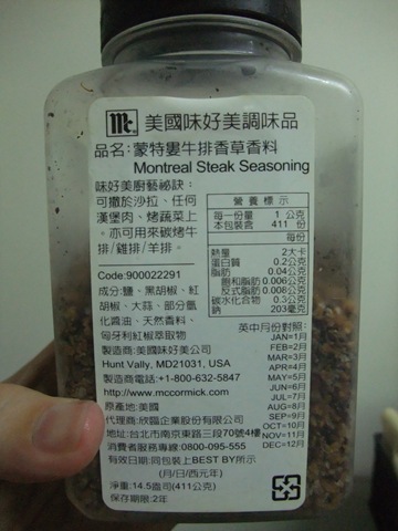 2. 牛排鹽:大潤發有賣!我用的是『McCormick《味好美》蒙特婁牛排香草香料(411g大瓶的)』<<這東西超好用!![]()