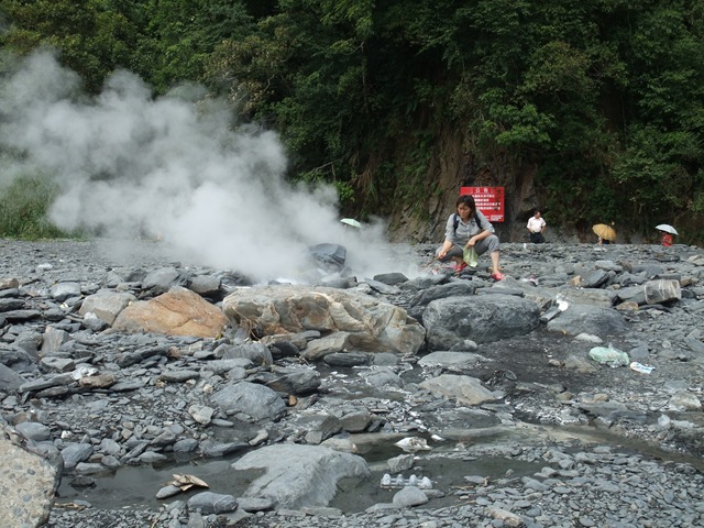 清水『地熱』:結果熱泉附近的石板全部都是可以把人肉燙熟的高溫!害我立刻又衝回冷溪消腫…..