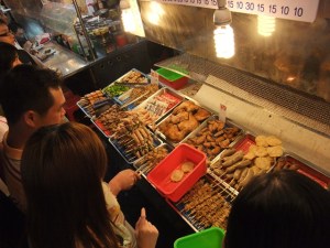 看到有些遊客買著雞蛋、玉米,又看到地熱,於是先問一下附近專賣地熱準備用品的店家,地熱要往哪走後就準備要出發了。由於看到星期六羅東夜市的盛況,所以心裡盤算可能要先預定卜肉,不然10點一到,會有一堆觀光客,那我就必須排到死。