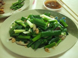 炒三星蔥的材料應該有三星蔥(廢話!)、蝦米、香菇!