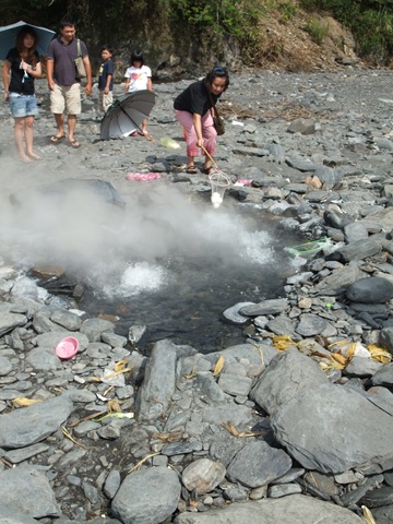 這邊由於雨水多,溪水容易暴漲,只要下一次大雨,清水地熱的熱泉就會蓋住!當地人會再用怪手挖開!