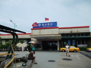 礁溪車站,當時因為八八水災而國旗降半旗!