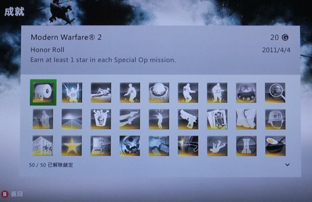 經過某位網友的幫忙,總算拿到MW2的全成就,但要不是Special Ops有關卡其強制一定要雙人玩,不然應該可以更早拿到.![]()