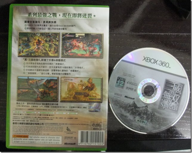 這片真‧三國無雙4 Special 的日版算是XBOX 360的一大名片,因為竟然只相容於日機XBOX 360, 同樣是NTSC-J的亞洲機卻完全無法相容! 所以也造成 真‧三國無雙4 Special 日版中古片一片300~400, 而真‧三國無雙4 Special 台灣中文版卻是奇貨可居的奇怪景象。