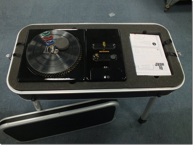 打開是一個鐵製皮箱! 長的跟街頭音樂藝人用的箱子幾乎一樣!只是上面烙印了DJ Hero Renegade Edition.![]()