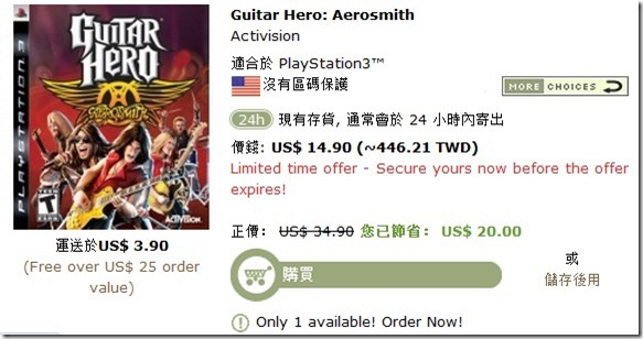 PS3 吉他英雄 史密斯飛船則要價US 14.9