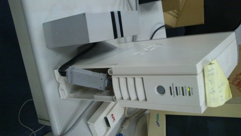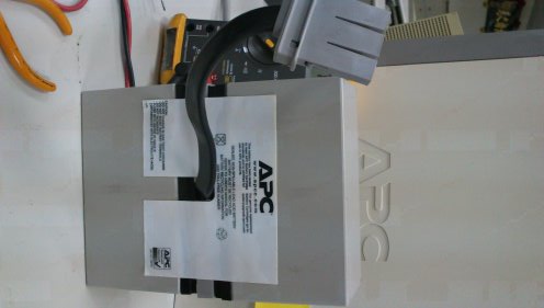 2013/4/22 公司另一台APV BR1000TW UPS 發出嗶嗶的警告聲(公司總共有4台), 面板上的Replace Battery一直閃著紅燈,造成公司的電話計費系統關閉。由於UPS該警告是更換UPS電池,於是就把電池拔下來檢查。