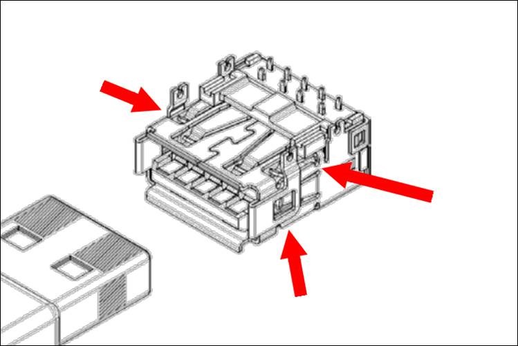 1. 新的A type的母座 金屬外殼,多了4(上2下2)+1的5個接地用彈簧(彈片)< –請按連結