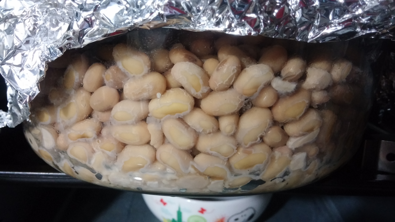 建議發酵時間:12小時~16小時,黃豆表面有薄薄一層菌即可。發酵24小時或以上則會有濃厚納豆胺的味道(就是阿摩尼亞的味道)。