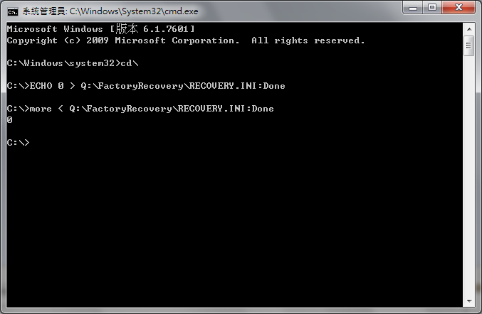 ECHO 0 > Q:\FactoryRecovery\RECOVERY.INI:Done