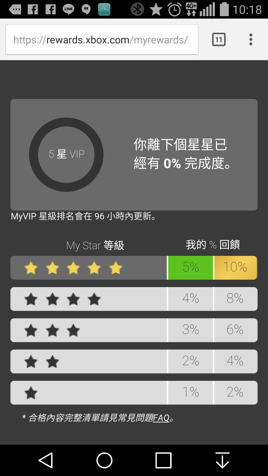 MyVIP 星級排名的認定標準是依照 Xbox 市集中合格內容的稅前價格而定。舉例來說,2015 年的 MyVIP 星級排名的認定標準是依照從 2014 年 9 月 1 日到 2015 年 8 月 31 日或從你註冊加入 Xbox Live 獎勵開始所消費的總金額而定。以下為目前每個等級的費用門檻,我們的規定與條款也有相同說明。