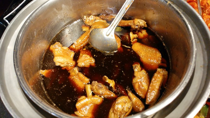 開頭就是一鍋醬油滷製料理的相片,原因就是在吃員工餐時,主廚在跟我抱怨試用的金蘭醬油之品質:有香味,滷煮之後沒有豆味,只有奇怪的酸味。結果整鍋雞翅膀原本應該有的雞油跟薑的香味,全變成很奇怪的醬油酸味。而且醬色實在太濃了!味道也太死鹹。 糟蹋了這些雞翅! 等等的抱怨…
