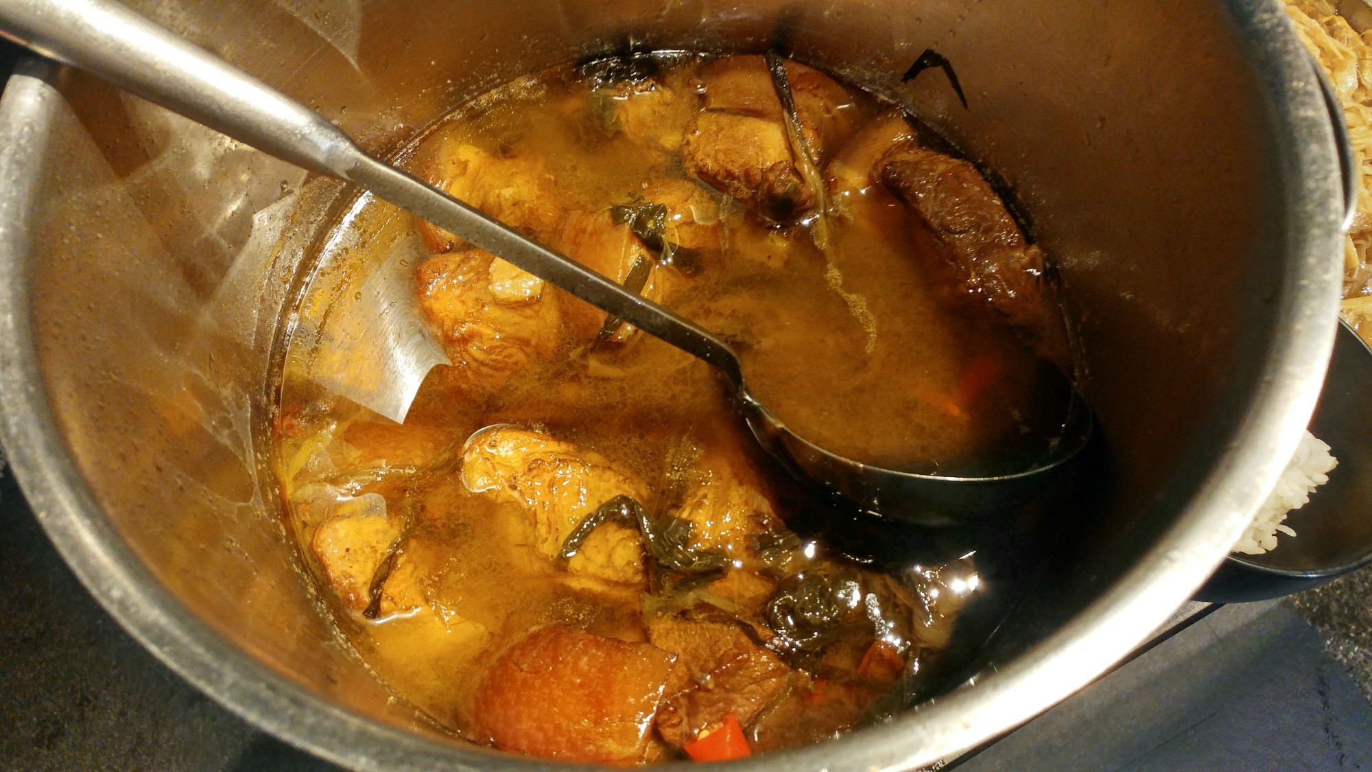 結果主廚煮了一鍋好吃入味的蒜味匣心肉,肉的顏色漂亮又油亮,醬汁豆味十足。