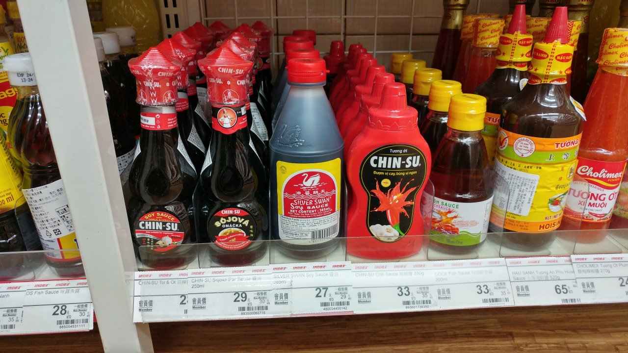 越南主要是用魚露,比較少用醬油,但是台灣還是有進口。然後上等海鮮醬、辣椒醬也蠻容易在越南式料理店看到。甚至越南版美祿也有賣(麥芽奶味比較重,可可比較少,另外就是很甜)。有些店家甚至還有新鮮香料跟蔬菜。