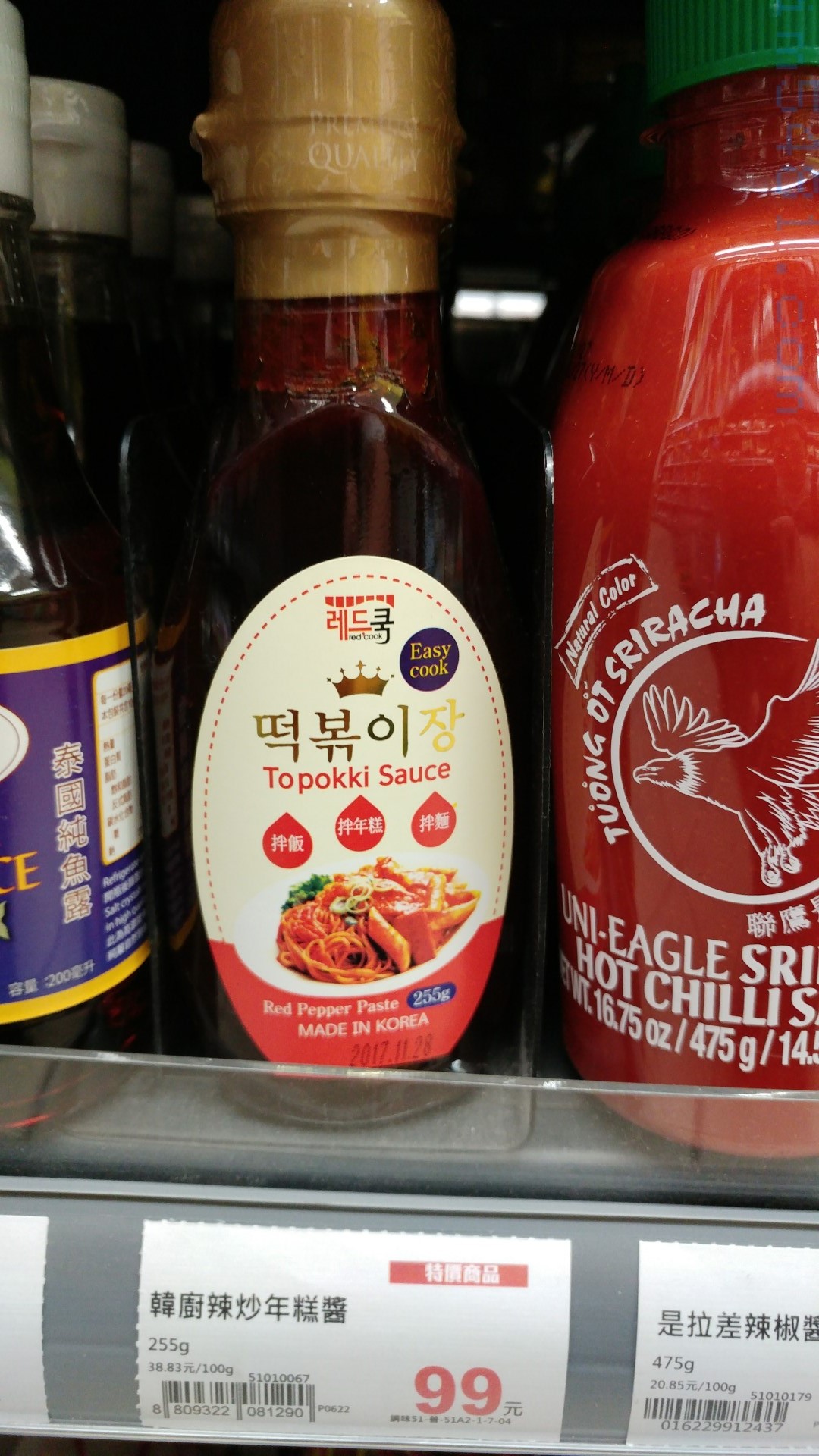 至於泰國的魚露跟泰式炸雞醬(酸辣醬,台灣都是翻譯成泰式甜辣醬)、椰漿也是有販賣。至於是拉差辣椒醬(大辣)或韓國辣椒醬、韓國炒年糕醬也是有販賣的!