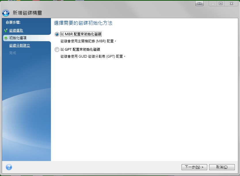 2. 要將GPT硬碟磁區重新改成MBR格式,