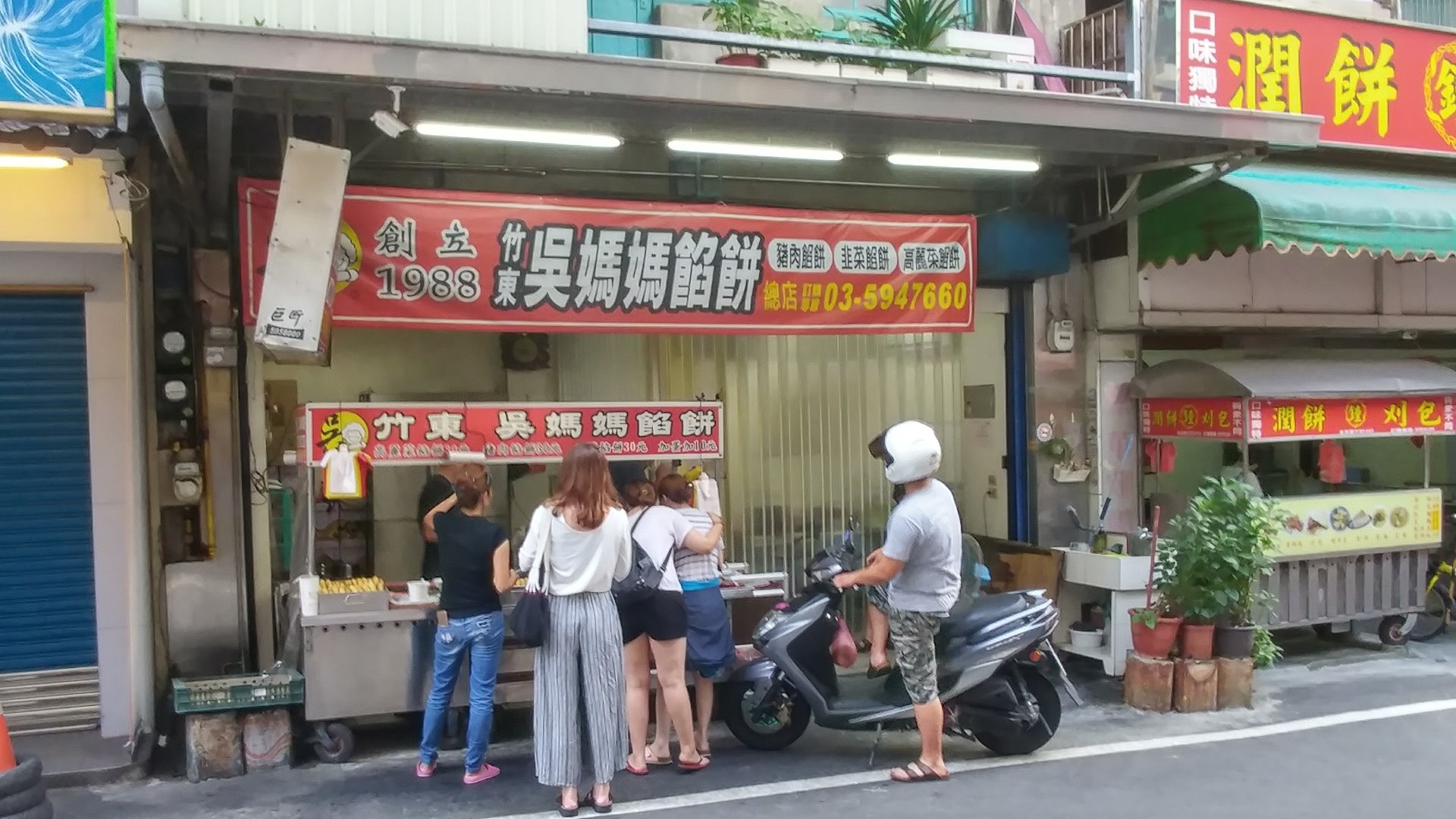 正奇怪為何每個騎摩托車的竹東人,有時會騎車騎到一半,然後停在路上啃個類似蔥油餅的東西? 走過一堆小巷後,才找到這家竹東吳媽媽餡餅店。