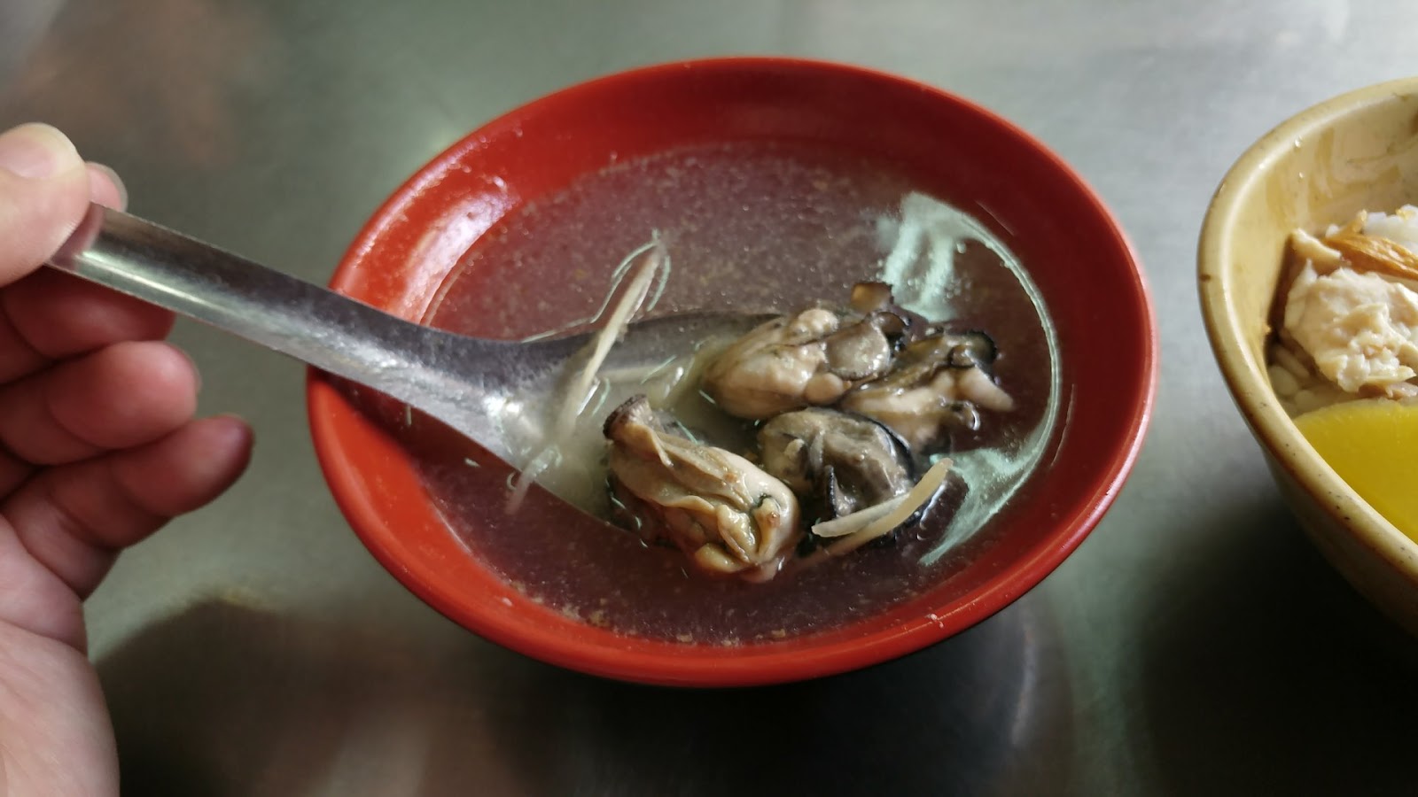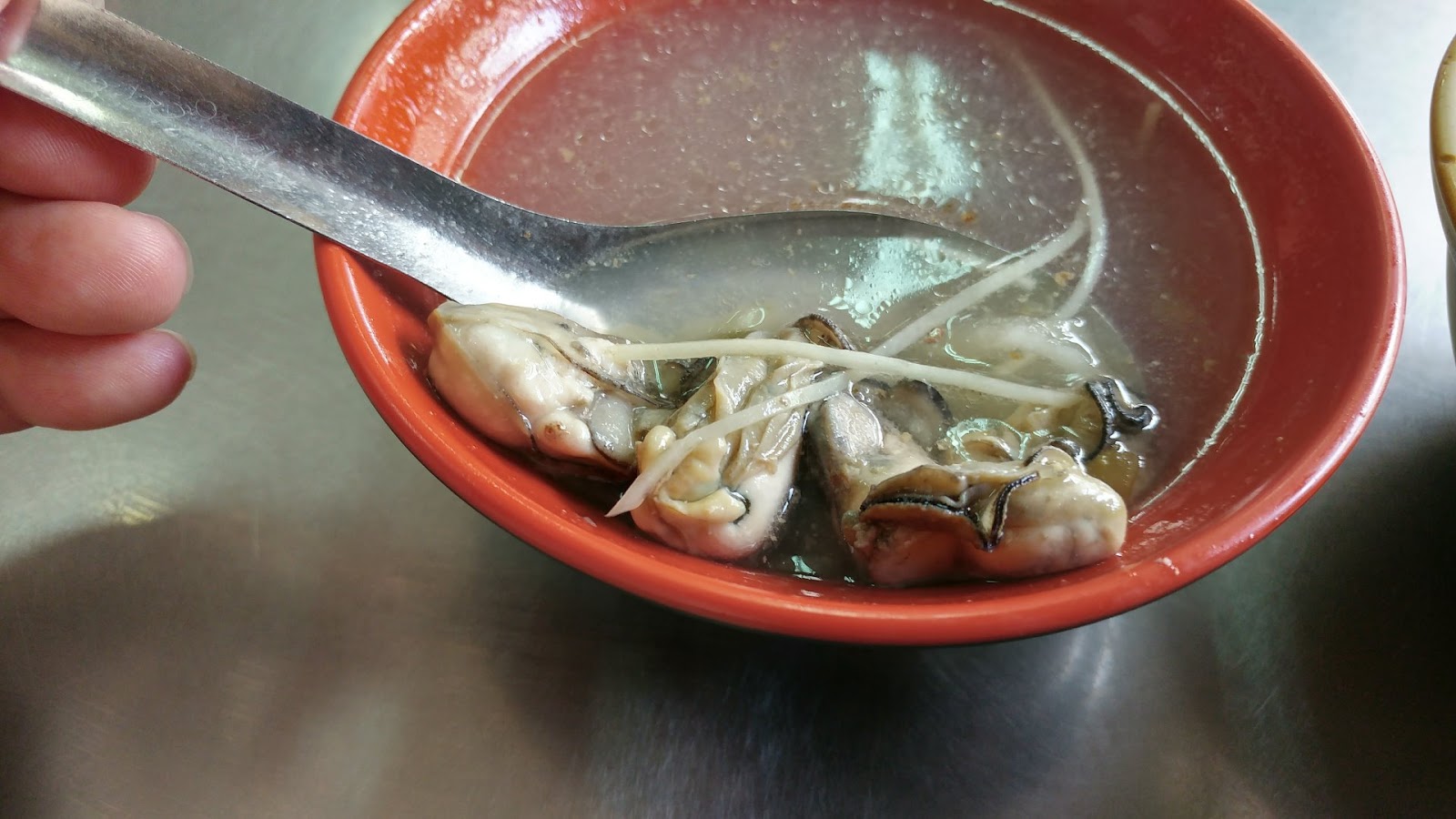 蚵仔湯頭不錯,應該是其他湯共用的高湯,然後放上燙好的蚵仔,蚵仔也新鮮,但蚵仔沒洗乾淨,有蚵殼就算了,連黑色雜點也剩一大堆。比我隨便洗的還差。
