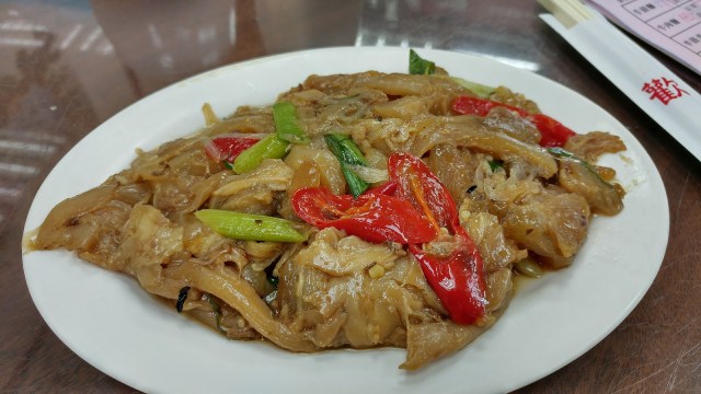 結果辣炒牛筋一吃,牛筋是很爛,但只有炒過的油味,跟調味的鹹味,有點鹹但又不是很辣,應該是配飯吃的風味。我吃沒兩口,心裡就準備想把這道菜打包了,以免浪費。