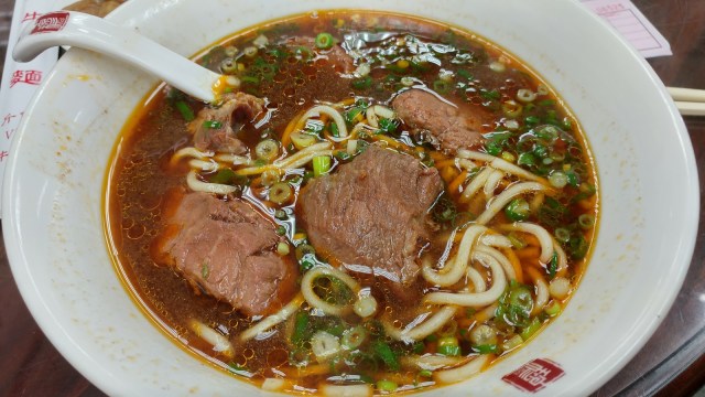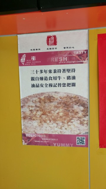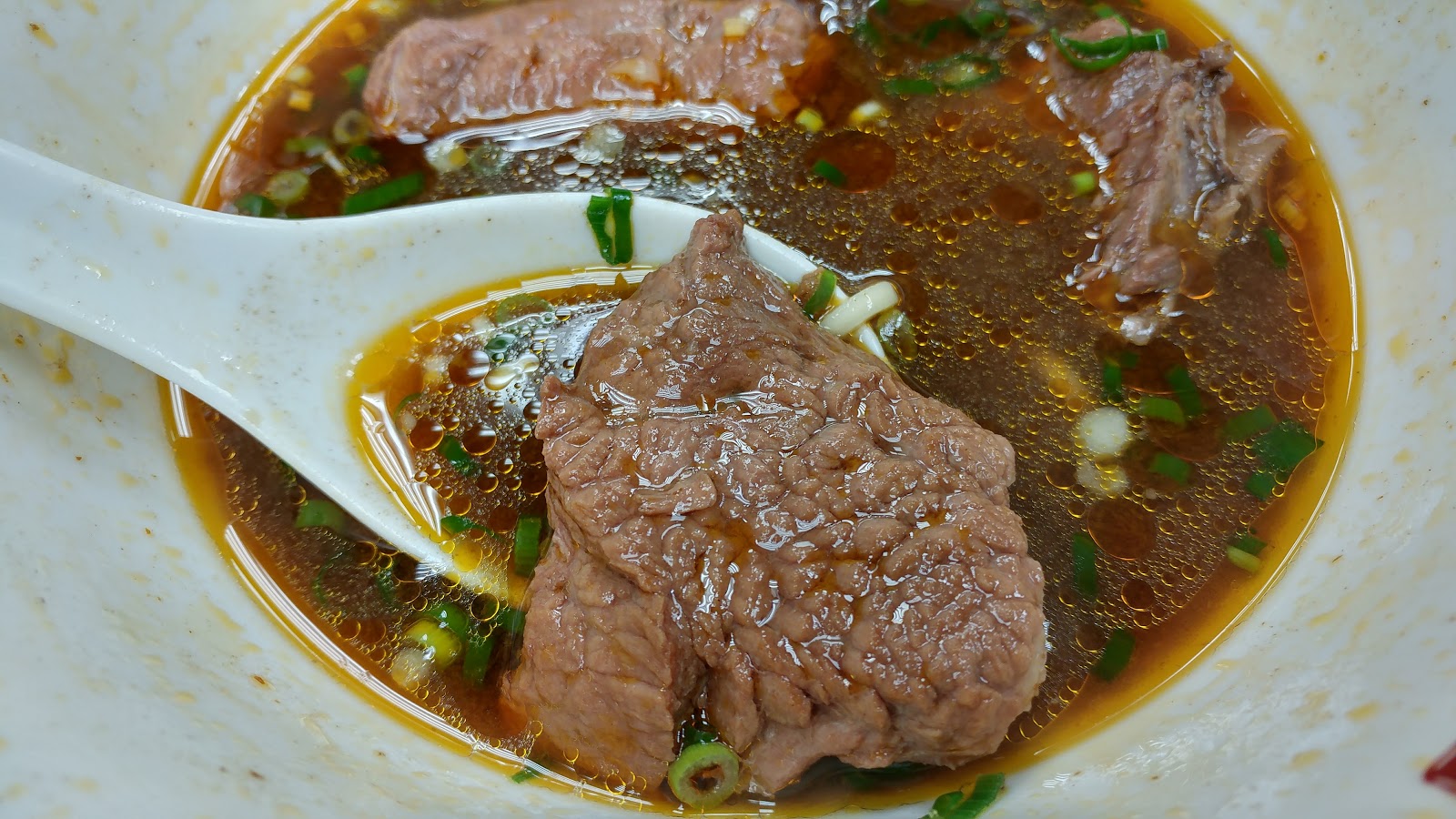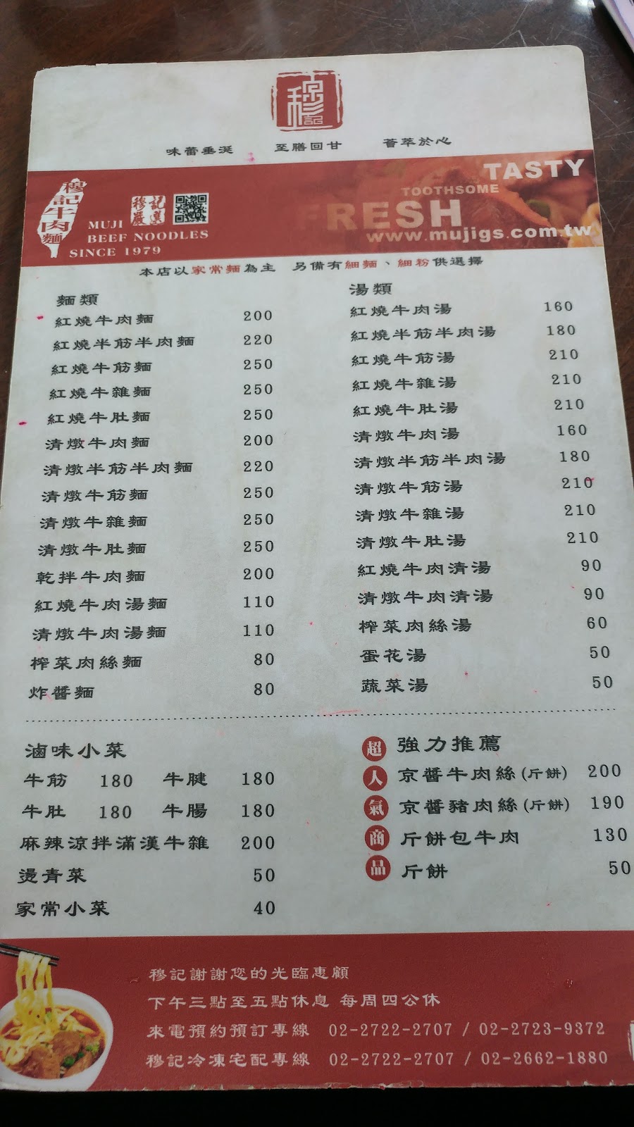 從一位愛吃牛肉麵長輩口中得知,他心目中的牛肉麵第一名是穆記牛肉麵。於是在找了一天的空檔,算好下午兩點左右去吃(避開尖峰人潮)。個人經驗:如果在尖峰人潮後,牛肉湯頭還是夠味的話,這表示這家湯頭就很穩定; 麵味乾淨沒麵湯味,就表示煮麵夠用心。