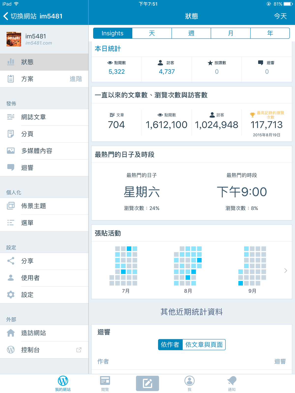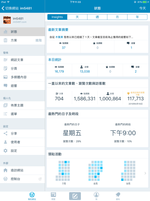電腦和網際網路 Uncategorized 個人理財 嗜好個人部落格的訪客人數突破1百萬 由im5481撰寫2017 年 09 月 12 日2017 年 09 月 12 日 個人部落格的訪客人數突破1百萬 有 1 則迴響。 我個人blog的訪客人數在2017.09.08 突破1百萬了! (不過由於發生時間剛好我在忙親阿公的告別式,所以也就不狂賀了…) 不過也看的出來,我這邊的訪客,幾乎每個人大都只看一兩篇文章而已….看來我還是要反省到底是部落格主題設計有問題,還是我的文章太有壓力? 2017.09.11的紀錄 2017.09.10的紀錄 2017.09.08的紀錄 分享文章 Share this: 按一下以分享至 Facebook(在新視窗中開啟) Facebook 分享到 LINE(在新視窗中開啟) LINE 分享到 WhatsApp(在新視窗中開啟) WhatsApp 按一下即可分享至 X(在新視窗中開啟) X 按一下即可以電子郵件傳送連結給朋友(在新視窗中開啟) 電子郵件 更多 分享到 Tumblr(在新視窗中開啟) Tumblr 分享到 LinkedIn(在新視窗中開啟) LinkedIn 點這裡列印(在新視窗中開啟) 列印 喜歡 正在載入... 相關