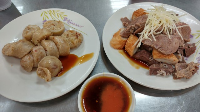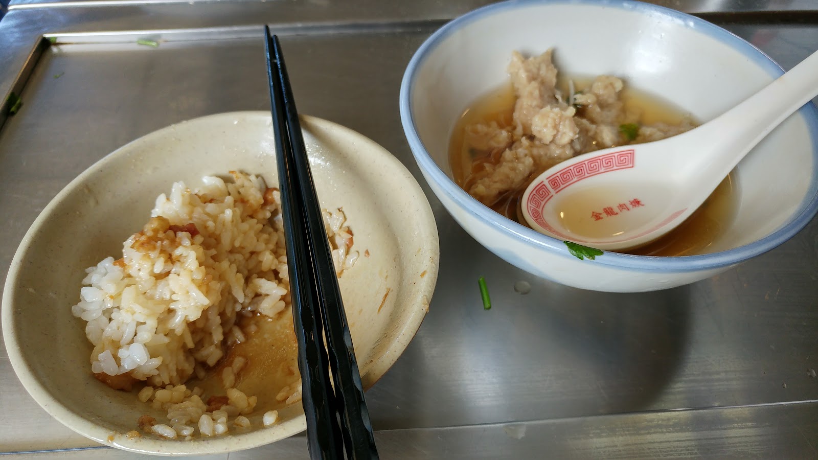 羹湯有夠鹹,一喝就直接一股醬油味,感受不到好湯頭。肉焿則是更鹹,鹹到應該是當成小菜放在白飯上面配著吃,而且在港口不用魚漿用澱粉?