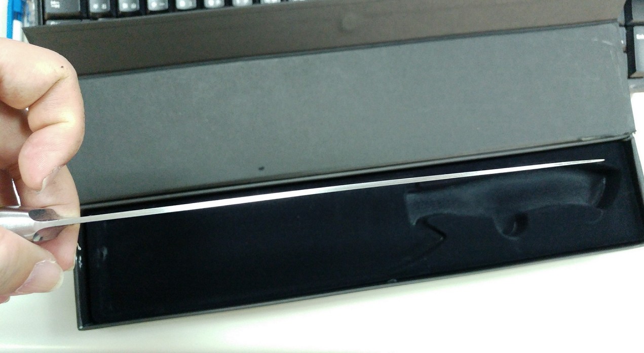 四. 刀盒尺寸不合外加不牢固,刀子在運送過程移動了位置,結果刀尖被撞斷。