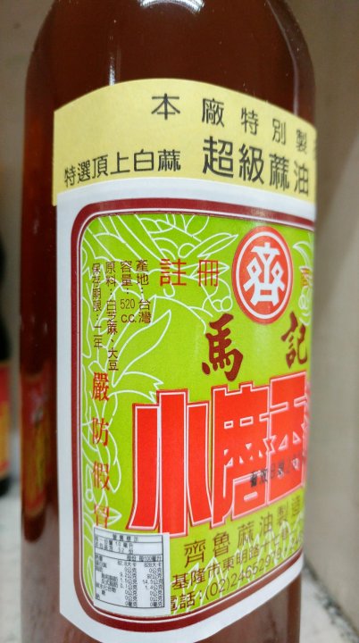 馬記齊魯蔴油 超級麻油,不要看其原料,這瓶可是純的白蔴油,為馬記最高級的產品!我跑了基隆、宜蘭、花蓮,就只有再順發食品看的到。