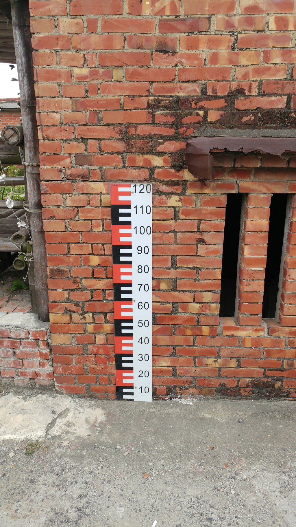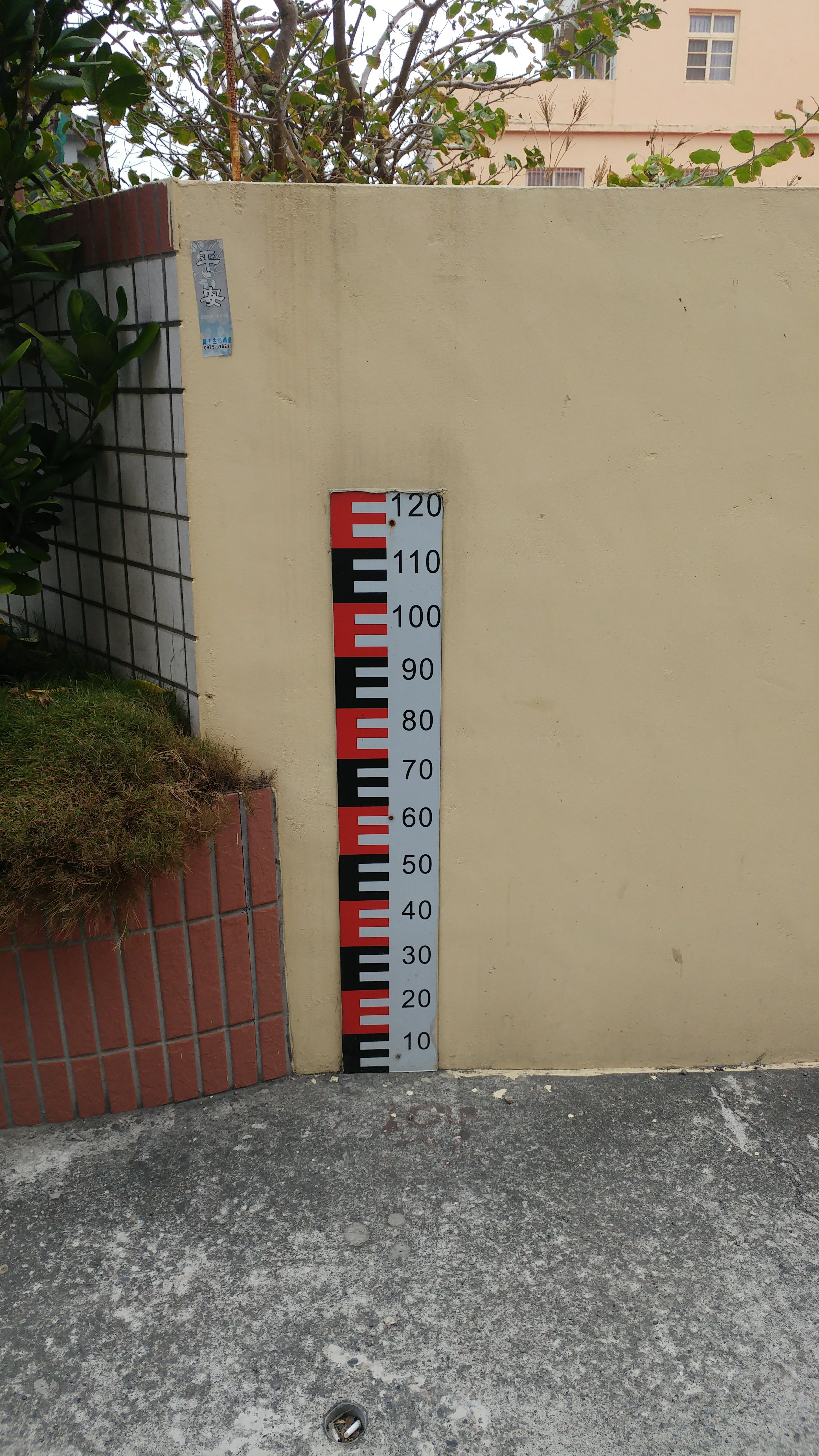 如果你到臺灣西部靠海的村莊,有時會看到村莊牆壁上有一個標尺, 從地面開始到約120cm左右。其是做什麼用途呢?