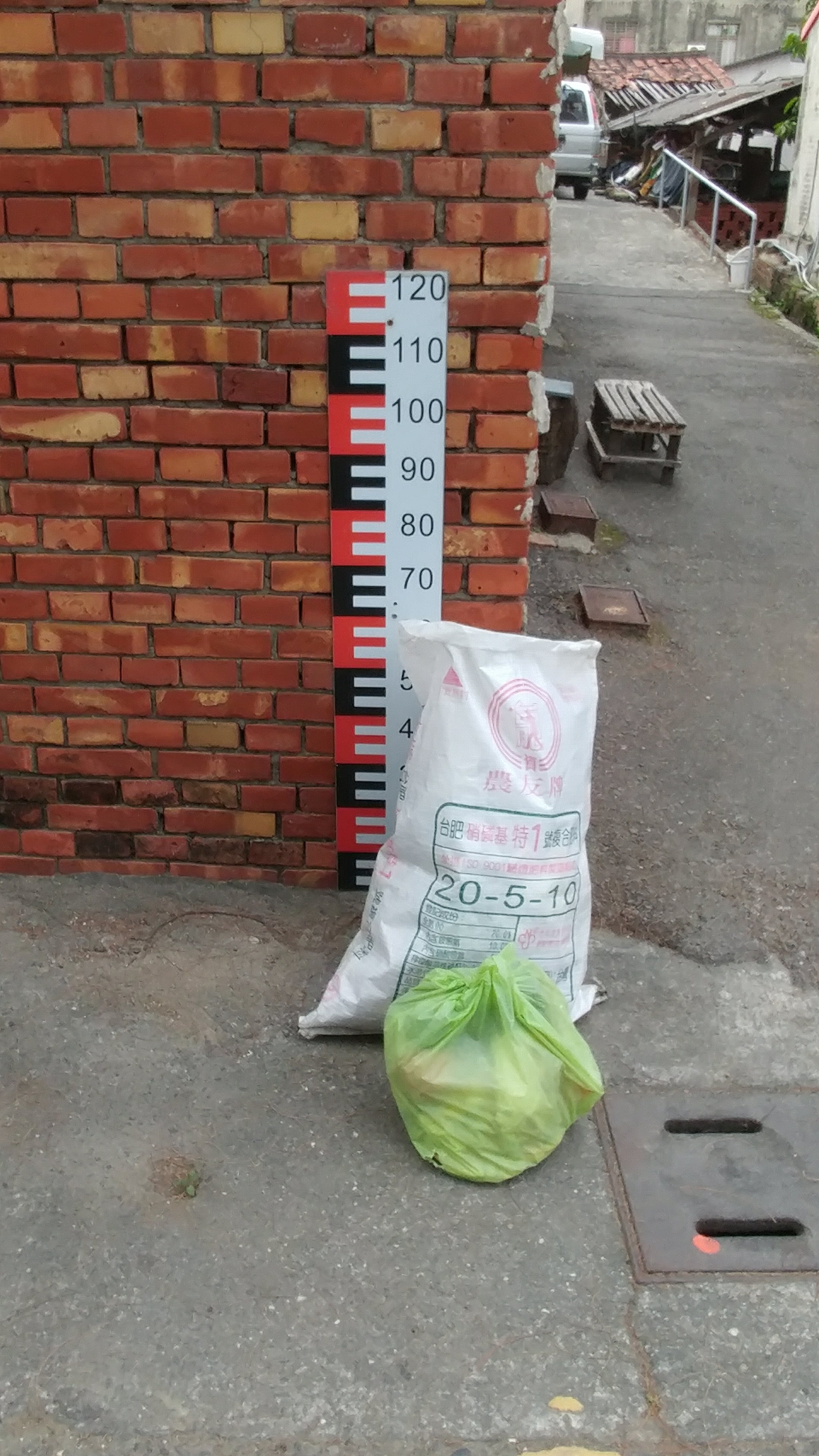 但要提出申請跟受災證明給鄉鎮公所。於是就提供了從地面開始到水面高度的統一標尺,作為統一標準。依照經驗,標示高度大多是100cm~120cm,如果再超過就超級嚴重了。
