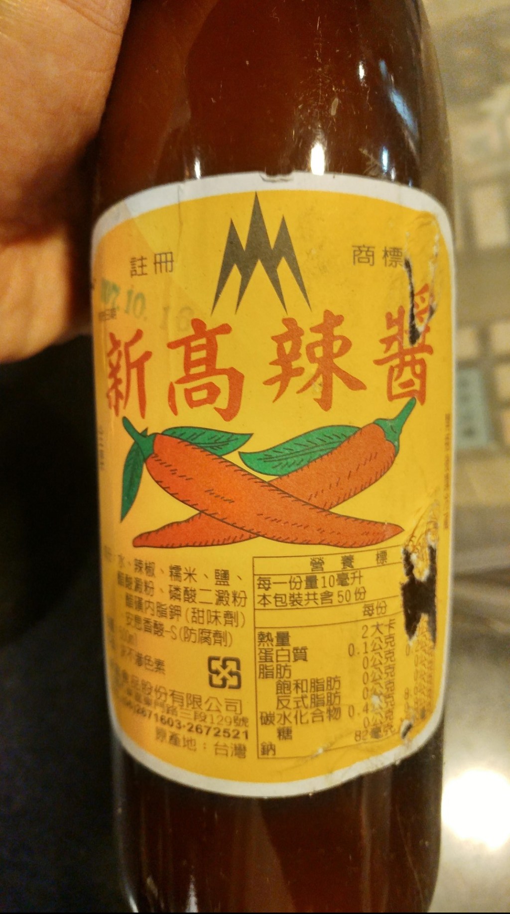 這是由台南市的醬油廠商新高食品製作的辣椒醬,想買也必須跑一趟台南才買的到!如果在新高食品購買的話,其會送一個瓶蓋讓你方便蓋好。