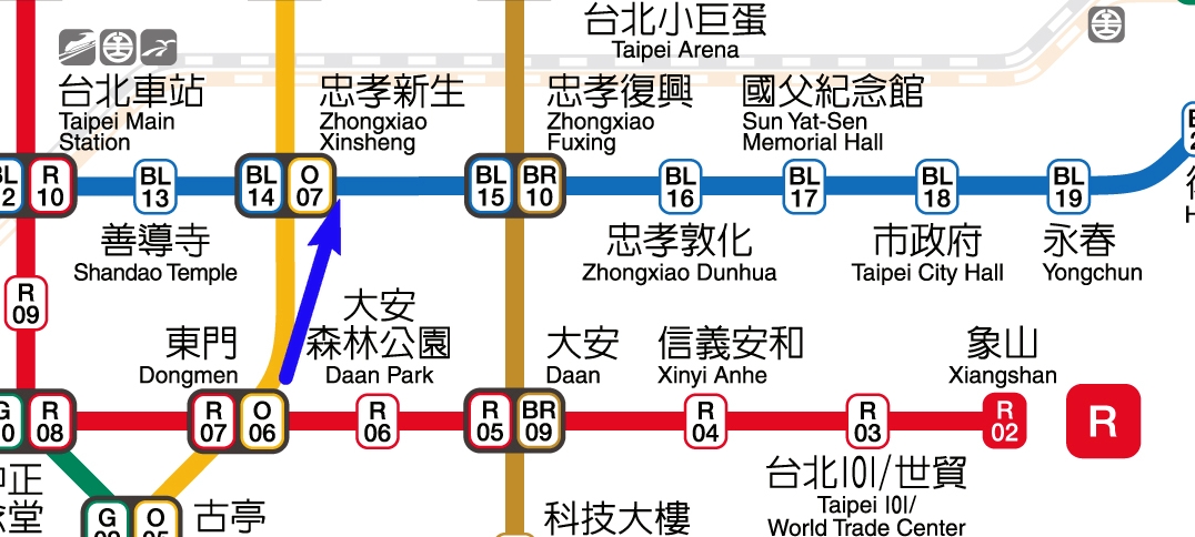 我搭捷運,從忠孝新生站出發,搭橘線往南勢角的列車,一站就可以到達東門站。