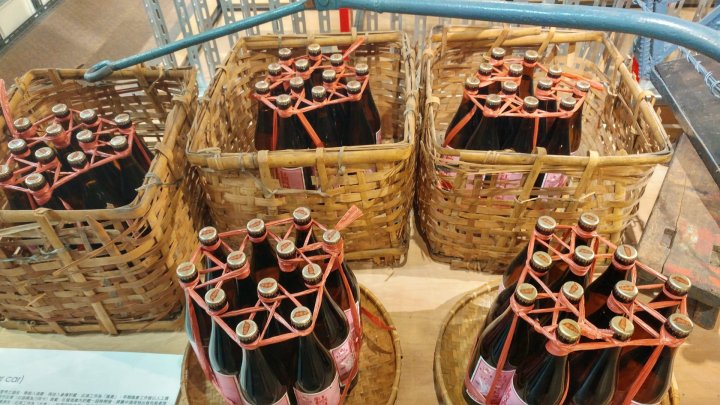 傳統的醬油,汽水,酒瓶的一打綁法。