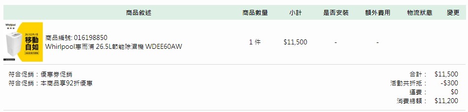 惠而浦剛好推出新機種 +特力屋年底特賣85 折