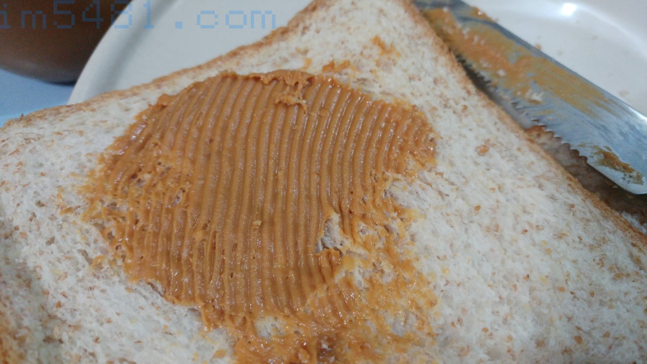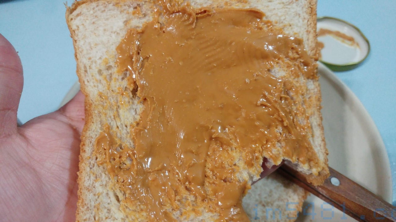 香氣非常的濃厚,花生醬也非常黏稠,如果你跟我一樣塗厚厚的話,你入口的話,花生醬會黏在口腔裡跟牙齒上,就像吃麻醬麵吃到化不完的濃厚麻醬一樣,你還要用口水幫忙溶解之後,才能將這個黏人的東西溶解下來。