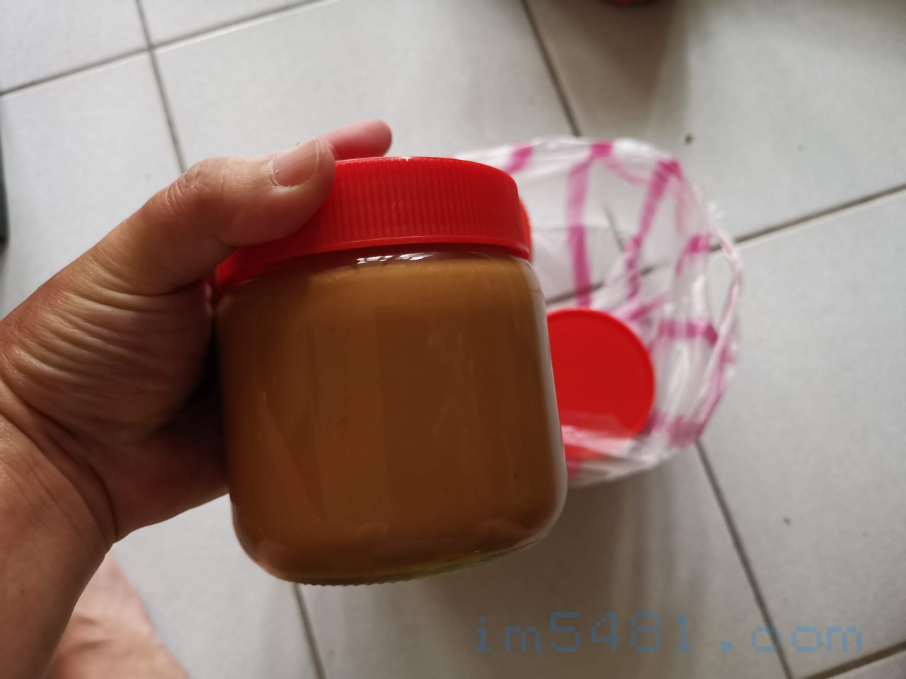 這是一款黏稠的濃香花生醬(應該無糖,因為我吃完牙齒不酸。)。