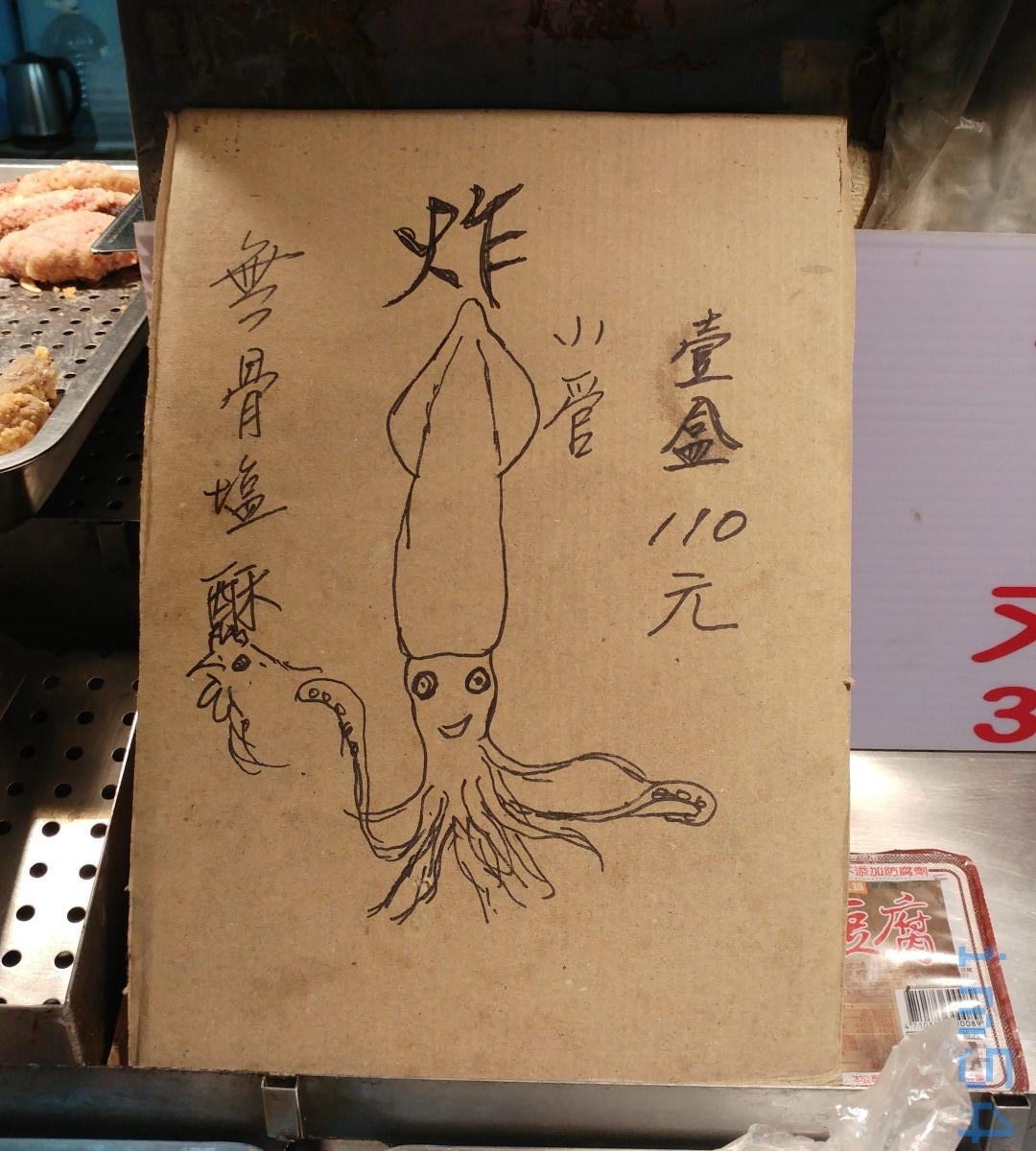 所以只要有空來這邊,我都會點一份炸小管,然後在四周繞繞。其實店家這種處理方式已經算是手路菜了,我當然願意等。一份其實為一盒小管,約1斤還是半斤? 我有點忘了…。