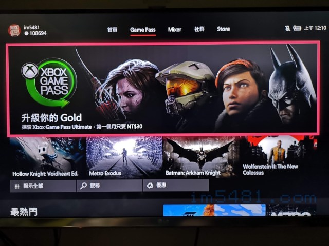 二. 將介面切到Game Pass,就會顯示出 Xbox Game Pass Ultimate 升級特價 的訊息。