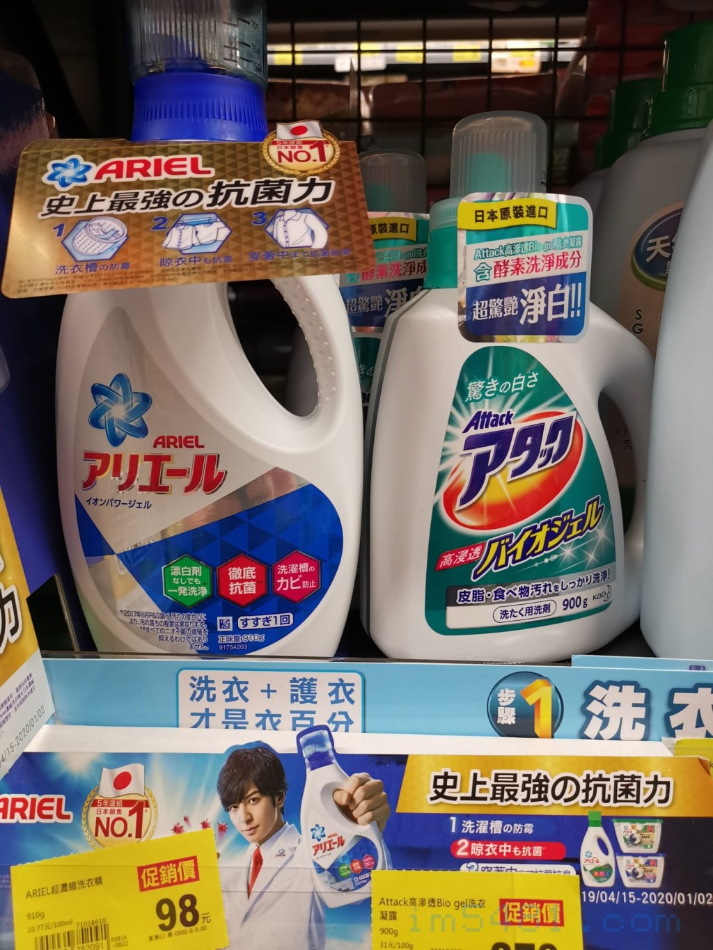那家全聯規模算是小的,洗衣精擺得不多,但很剛好的, 店家把我認為洗不乾淨的兩個日本製洗衣精排在一起。這兩個買回去,我只有洗出一堆臭衣服跟臭毛巾! 特別是毛巾,這兩個完全洗不動任何汗臭、成人臭跟皮脂臭,兩個洗衣精都洗不乾淨。