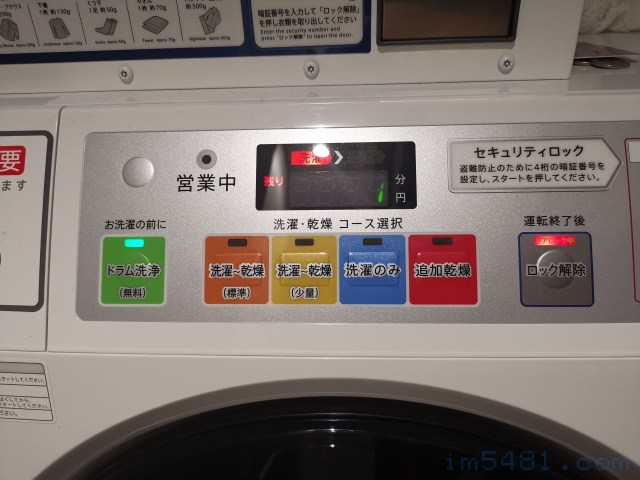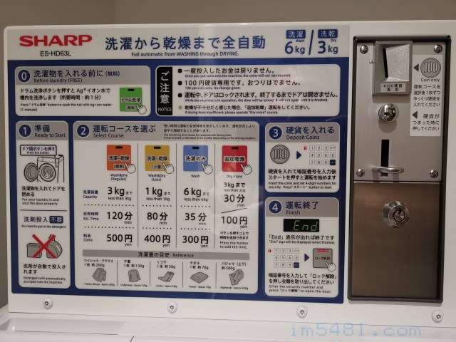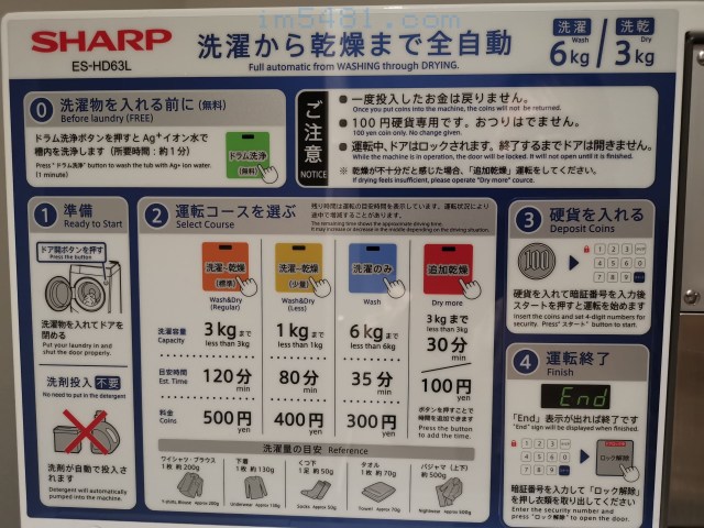 這不需要額外買洗衣精,只需投幣5個 日本100円的硬幣 ,然後須等兩小時即可完成3公斤衣物的洗衣-乾燥行程。
