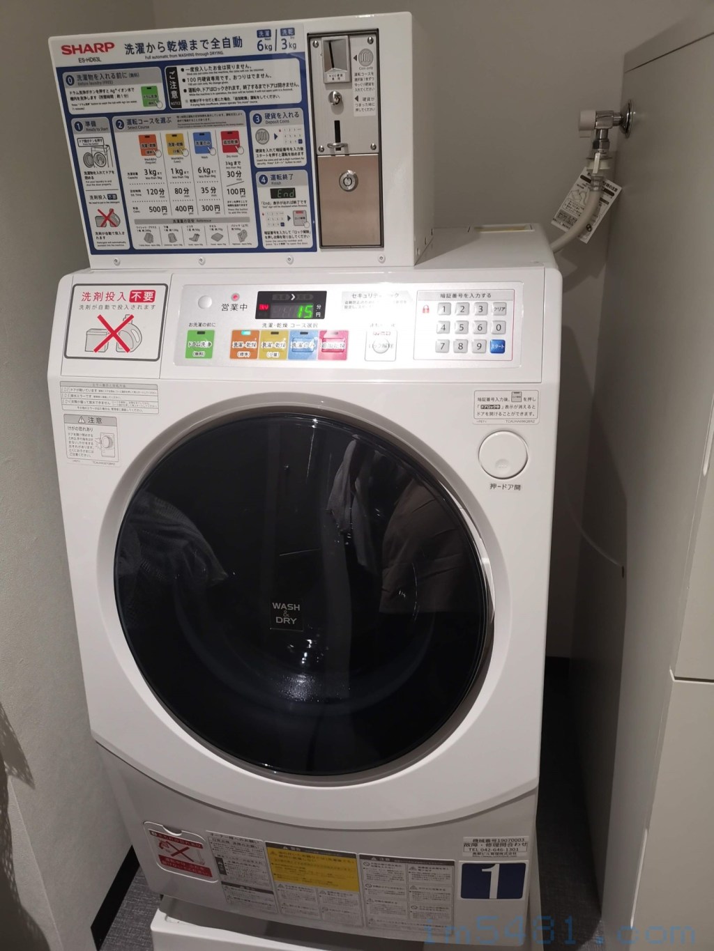 這不需要額外買洗衣精,只需投幣5個 日本100円的硬幣 ,然後須等兩小時即可完成3公斤衣物的洗衣-乾燥行程。