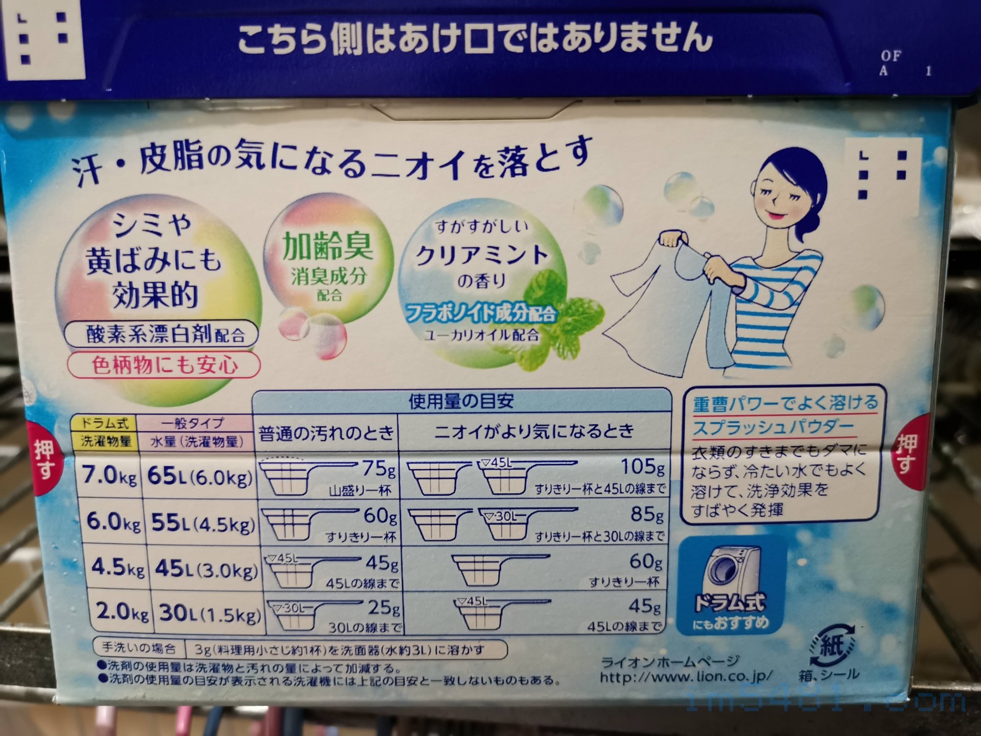 例如日本獅王酵素消臭濃縮洗衣粉,就有兩種不同用量的建議使用量。如果怕有殘留,可以啟動加強洗清(Extra Rinse),其會增加一次洗清,以便洗去可能殘留的洗劑跟汙垢。