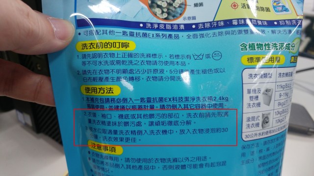 只要是洗衣精大廠,都會建議用此方式來增強洗衣效果,特別是髒汙的集中處,例如袖口、領口等。