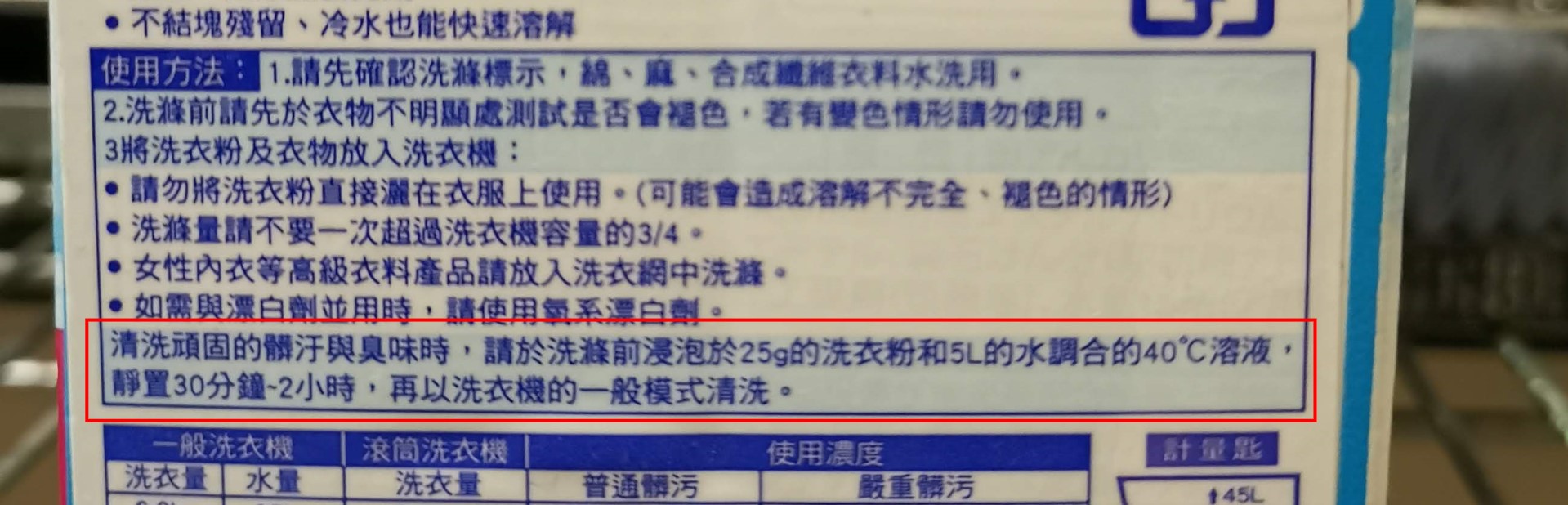 並且絕大部分的洗濯洗劑廠商都建議能在用熱水(40度C)溶解後,衣物浸洗30分鐘以上,效果更佳。