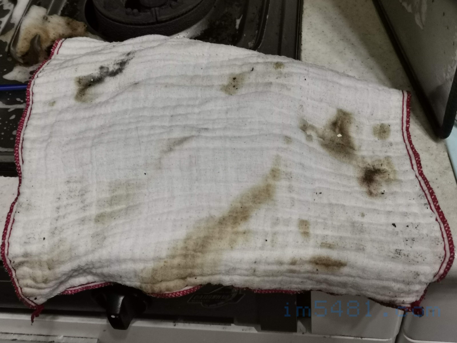 結果經過幾下的刷洗後,白色出現了! 而且因為實在太容易刷洗乾淨,所以我直接擴大刷洗範圍。