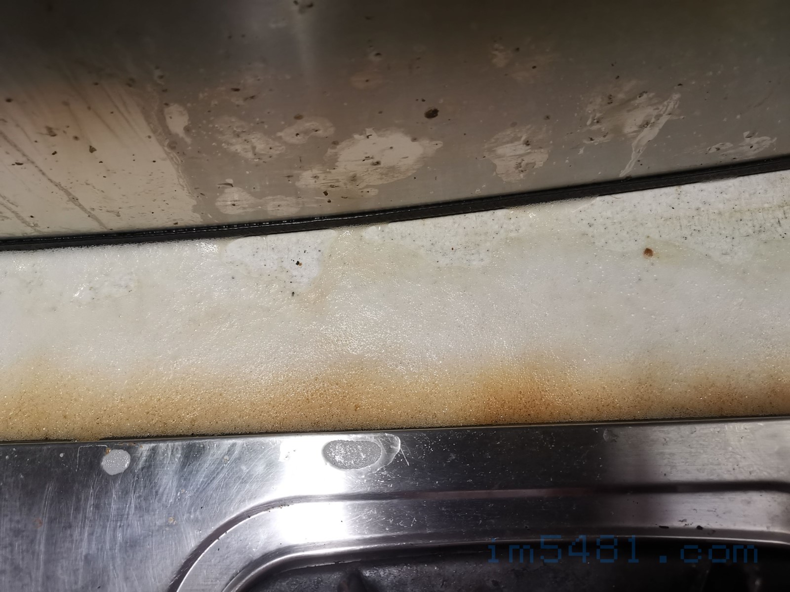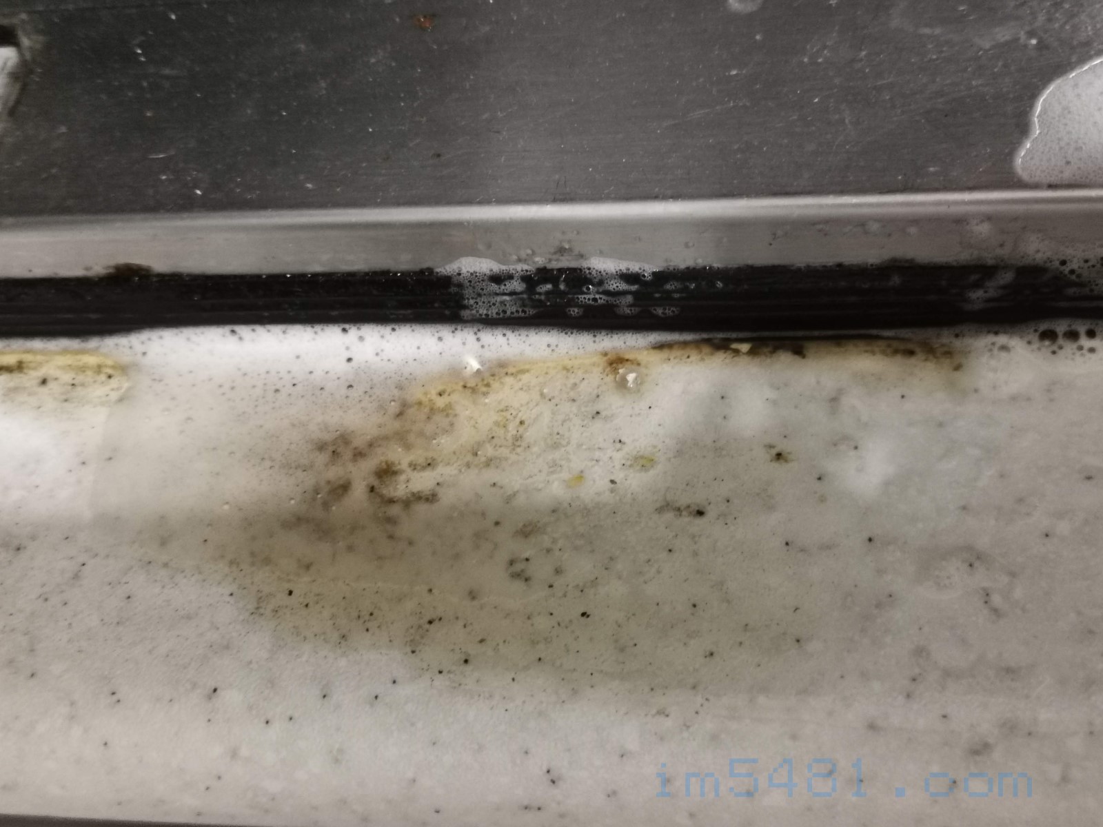 這黏垢我曾經試著用過碳酸鈉溶液去洗,但縫隙部分很難洗,所以我原本只有把外圍的黃色油垢洗掉,縫隙部分洗不起來。