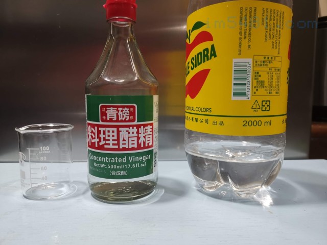 2. 然後倒進 100 ml 酸度40度醋精 ,