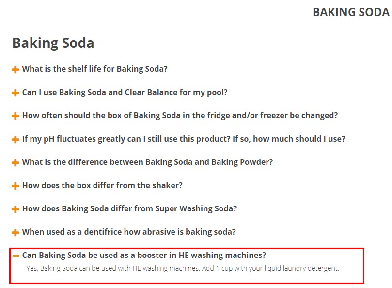 『 Yes, Baking Soda can be used with HE washing machines. Add 1 cup with your liquid laundry detergent. 』