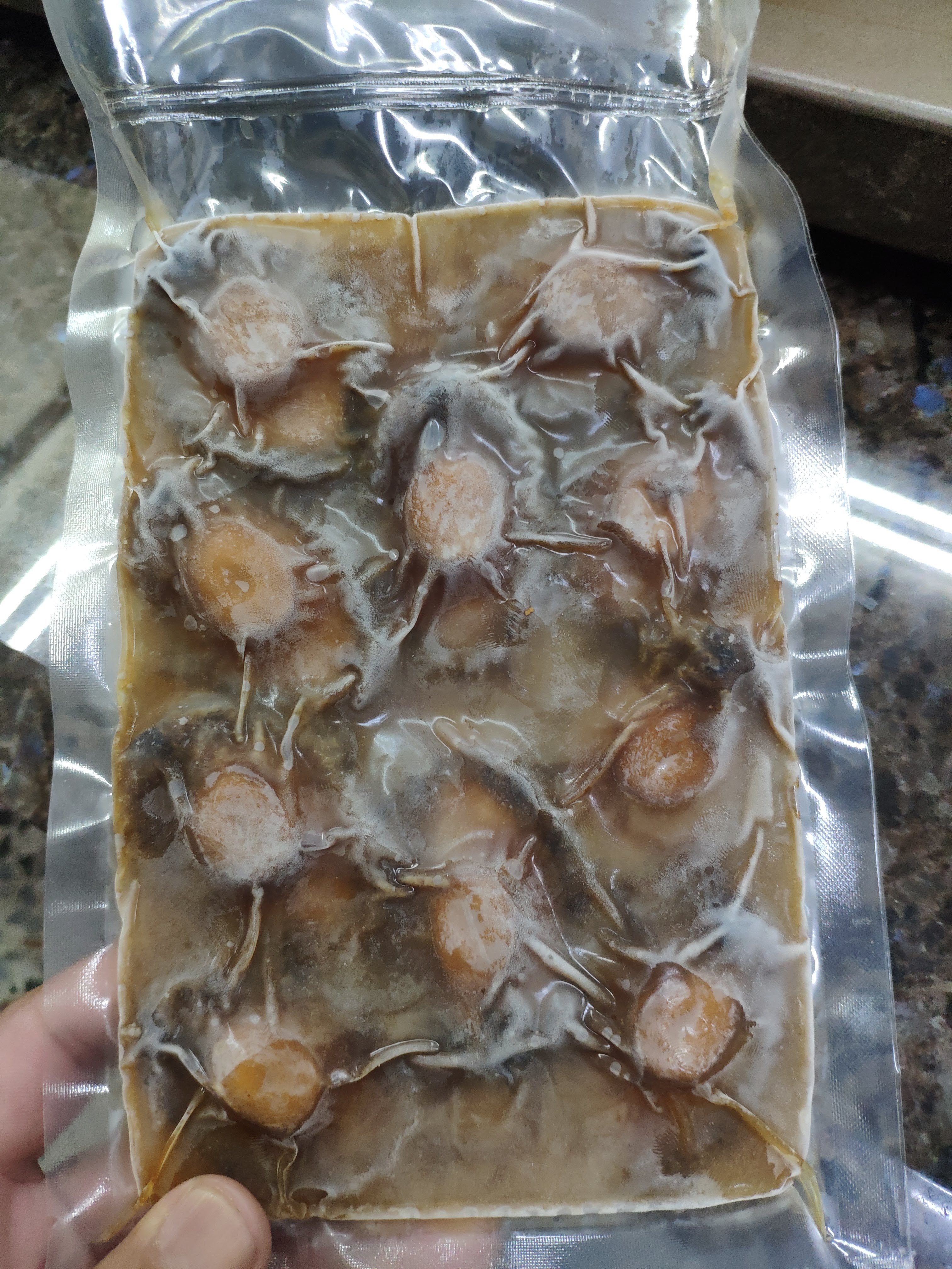 通常餐廳會解凍後加熱勾芡,變成紅燒鮑魚類的餐點。